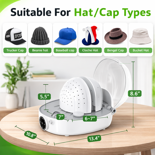 This **cap cleaning and shaping machine** uses steam and gentle heat to clean, dry, and restore the shape of your hats. The adjustable support frame and multiple air outlets help remove moisture while keeping caps perfectly structured. It is ideal for maintaining baseball caps, trucker hats, bucket hats, and other headwear quickly and conveniently at home.
