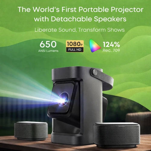 Enjoy a cinema experience anywhere you go with this portable smart projector and powerful dual Bluetooth speakers. Designed for both indoor and outdoor entertainment, it delivers bright visuals and immersive stereo sound in one sleek, travel-friendly system. Perfect for movie nights, gaming, camping, or backyard entertainment.