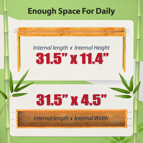 This bamboo top rack adds extra storage space to your kitchen while keeping spices, condiments, and utensils neatly organized. Made from durable bamboo with stainless steel lips, non-slip pads, and 6 hooks, it helps prevent items from falling and maximizes usable space above your stove. Its smooth bamboo surface is easy to clean and designed to bring both functionality and modern style to your kitchen.