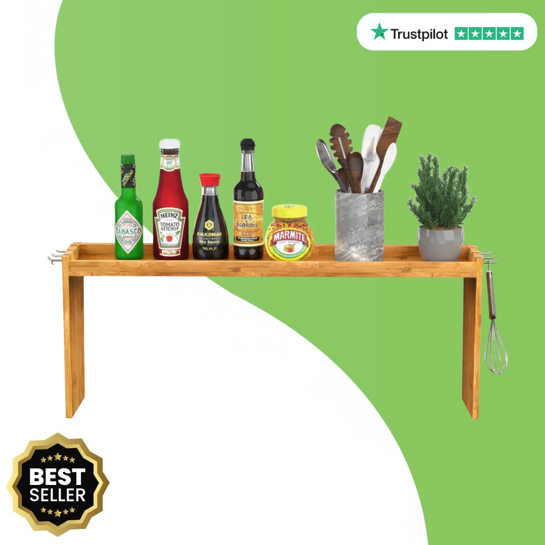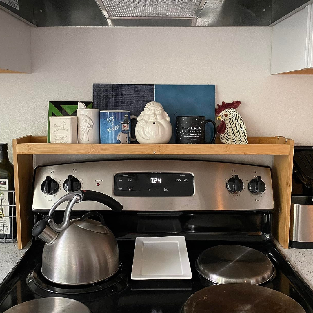 This bamboo stove top rack helped organize my spices and cooking oils perfectly. It added extra storage without taking up counter space. The quality is solid and it looks great in my kitchen.
